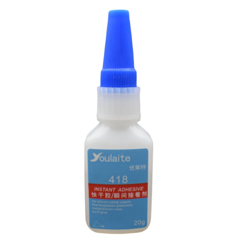 快干胶水H-418具有粘接速度快、操作简单、粘接强度高(撕拉测试达到产品破坏的效果)。 产品用途: 用于常温下快速粘接硅胶 橡胶金属(粘不锈钢、铁、铜、铝、五金件等)、塑料(粘ABS、尼龙、PC、PVC、PP、亚克力等)、木头、皮革等材料