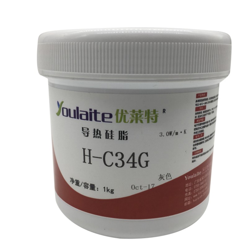 H-C34G(3.0W/m-k)导热硅脂俗称散热膏,导热硅脂以有机硅酮为主要原料,添加耐热、导热性能优异的材料,制成的导热型有机硅脂状复合物,用于功率放大器、晶体管、电子管、CPU等电子元器件的导热及散热,从而保证电子仪器、仪表等的电气性能的稳定。